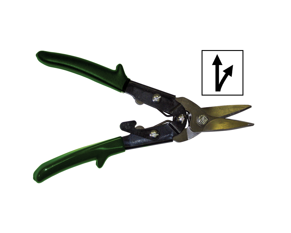 PK2 9-1/2″ aviation snips, 1-1/4″ right cut, green grips, ergonomic curved handles