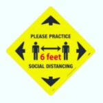 The floor sign indicating a warning for 6 feet social distancing requirements has taken on increased importance in the current global pandemic. The 12 X 12 size of the sign serves as a visible reminder to individuals to maintain a safe distance in public spaces to help prevent the spread of COVID-19. As graduate students, we understand the significance of following health guidelines to protect ourselves and others. By adhering to social distancing measures, we contribute to the collective effort to mitigate the impact of the virus and safeguard the well-being of our communities.