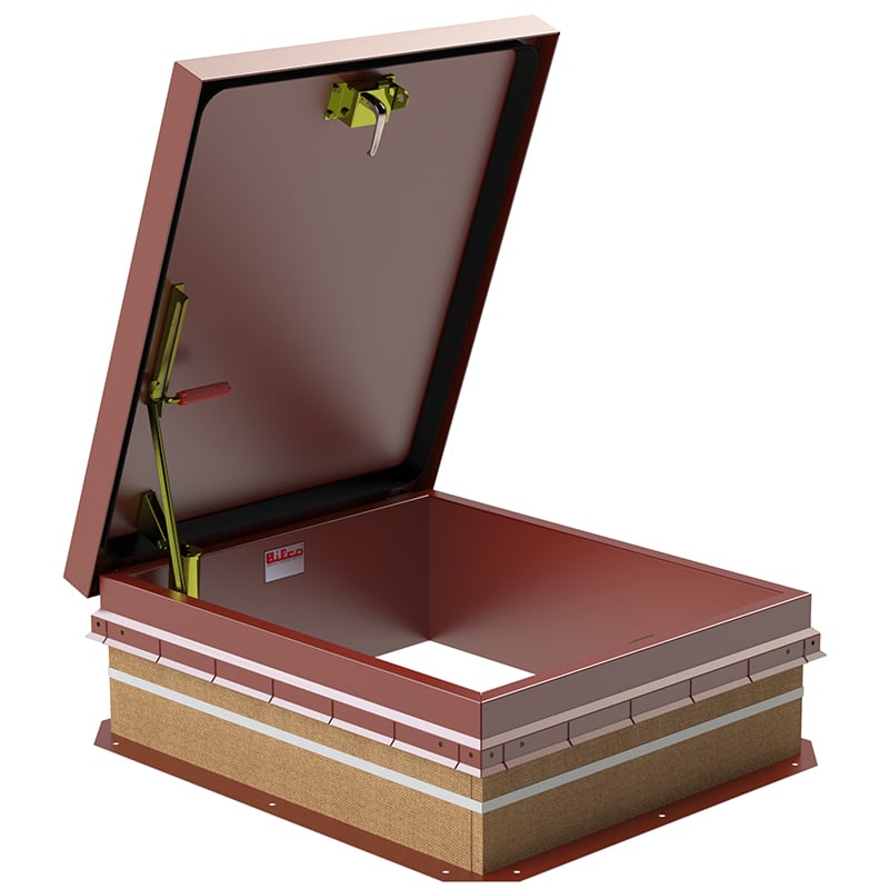 Type S roof hatches, 36″ x 30″ (914mm x 762mm), provide convenient, reliable access to roof areas by means of a fixed interior ladder. Our type s roof hatch features a counter-balanced cover design for easy one-hand operation and fully gasketed and insulated construction for weather resistance. Available in galvanized steel or aluminum construction.